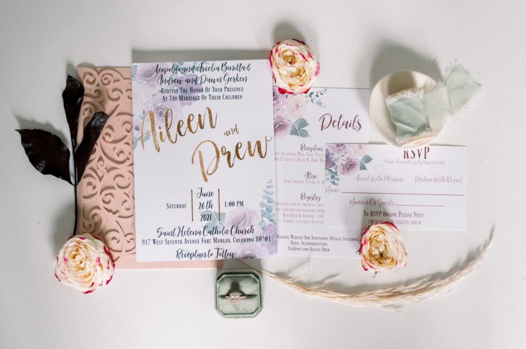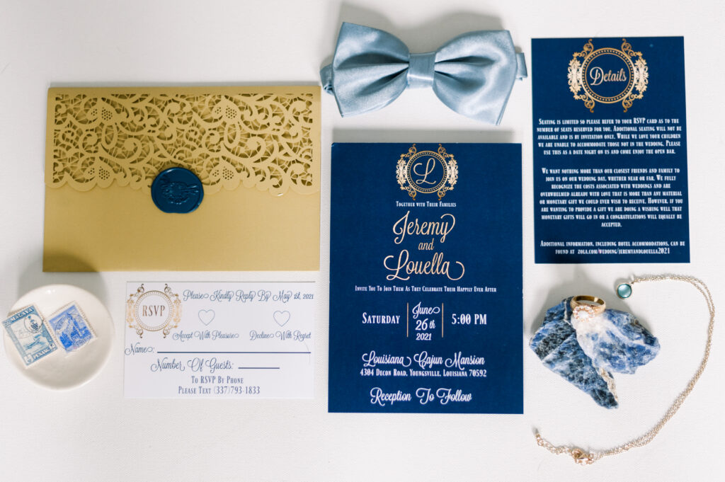 A wedding invitation suite can include the main invitation, RSVP card, details card, envelopes and custom embellishments such as wax seals, vellum wraps or ribbons. We help you decide what pieces make sense for your event and ensure everything feels cohesive.